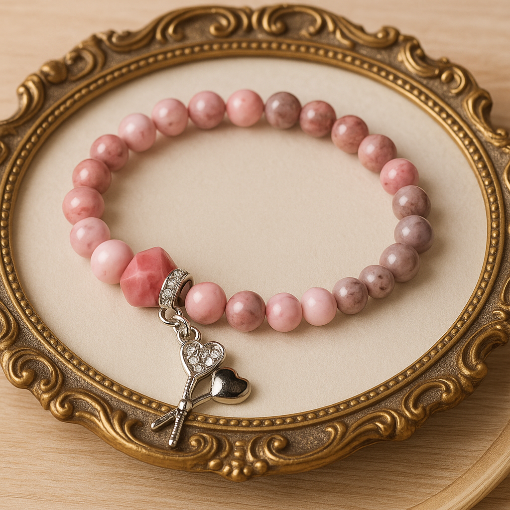 A delicate pink opal bracelet — all about softness, self-love, and calm confidence. Pink opal is loved for its warm, powdery tone and subtle glow on the wrist. Symbolically, it’s associated with emotional healing, relationship harmony, easing inner tension, and gentle support during times of change.