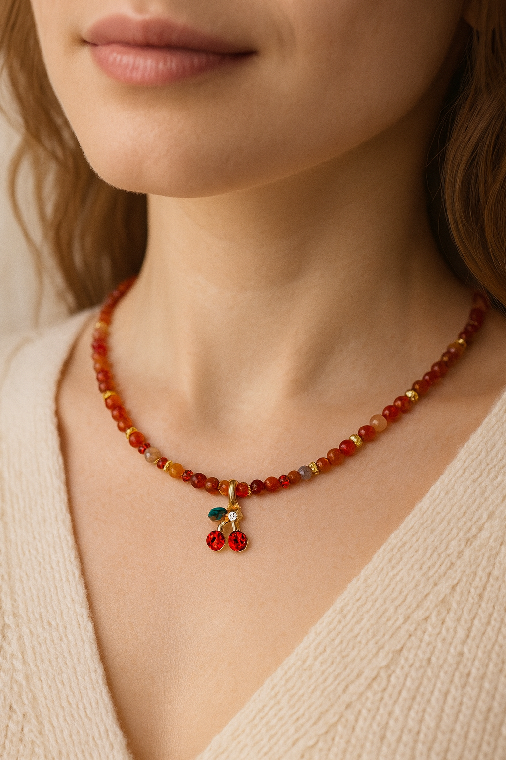 Колье из натурального сердолика — теплое, привлекательное украшение, которое подчеркнет линию декольте и добавит энергии любому образу. Сердолик ценится за свои насыщенные оттенки, от медово-оранжевого до глубокого терракотового, что придает колье яркий, но элегантный вид. Идеально подходит как для повседневной носки, так и для особых случаев, прекрасно сочетается с белыми, черными, бежевыми и бордовыми нарядами.